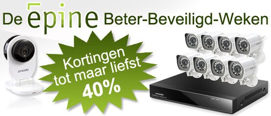 De Beter-Beveiligd-Weken van Epine staan garant voor kortingen en interessante acties. Zowel in onze Camerashop als op Epine Smarthome vind je speciaal door ons geselecteerde producten die we aanbieden met extra korting. Uiteraard alles gewoon nieuw in doos en met volledige ondersteuning en garantie.