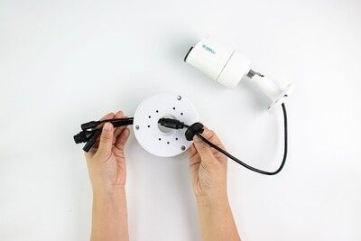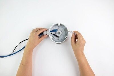 Haal de kabels van de camera door het deksel van de montagebox.